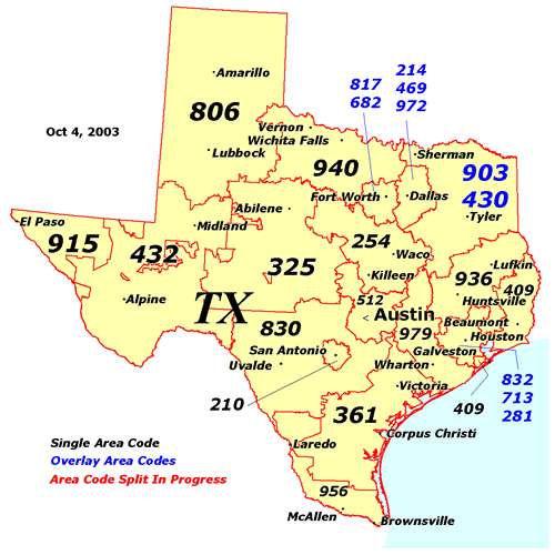 Choose a Texas Area Code to move from